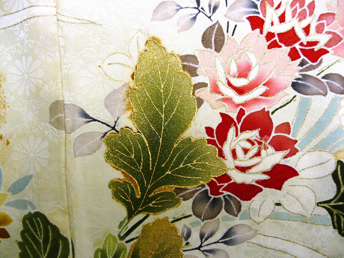 柄とのバランスを考えながら、ピースガンで箔を吹きつけます。